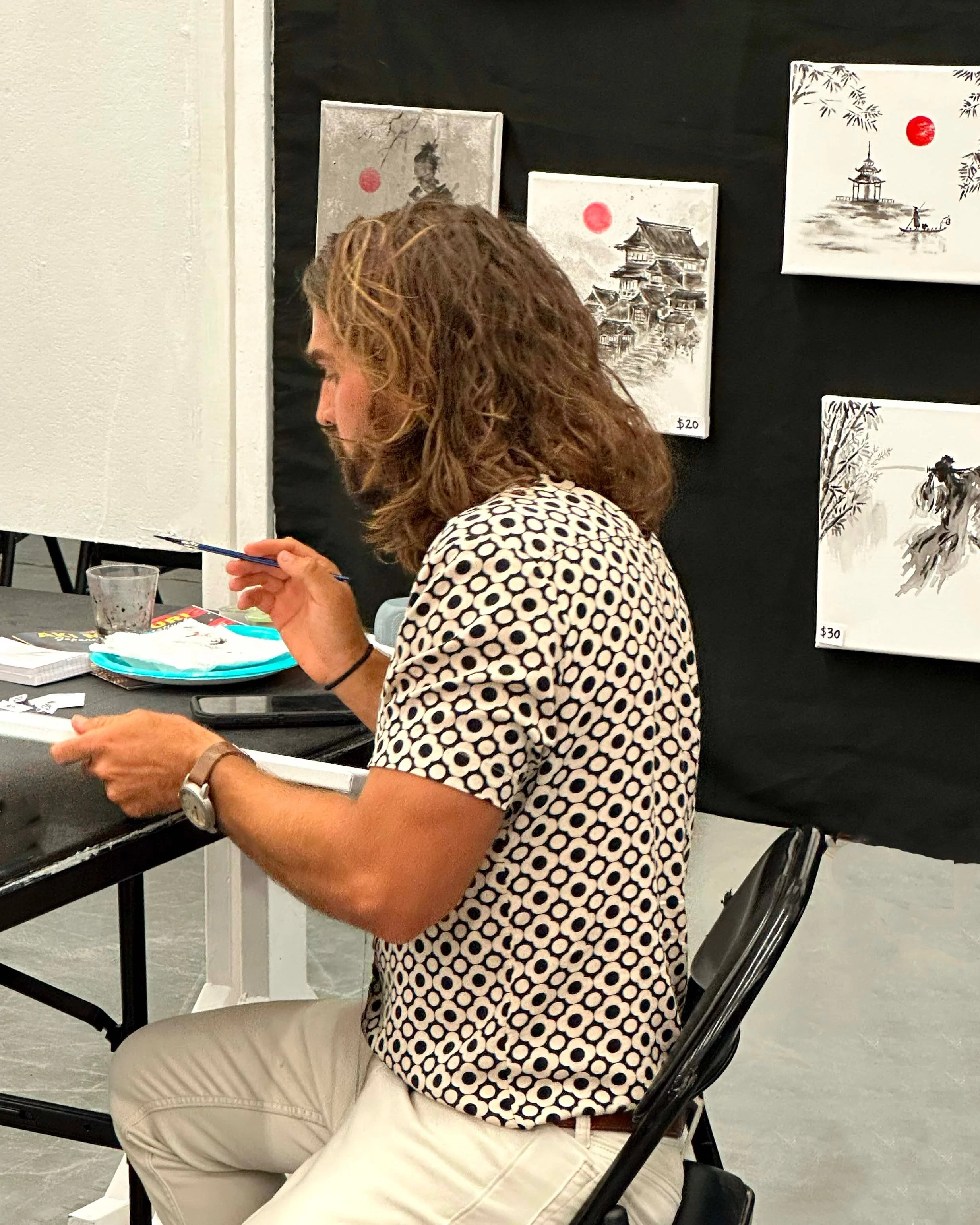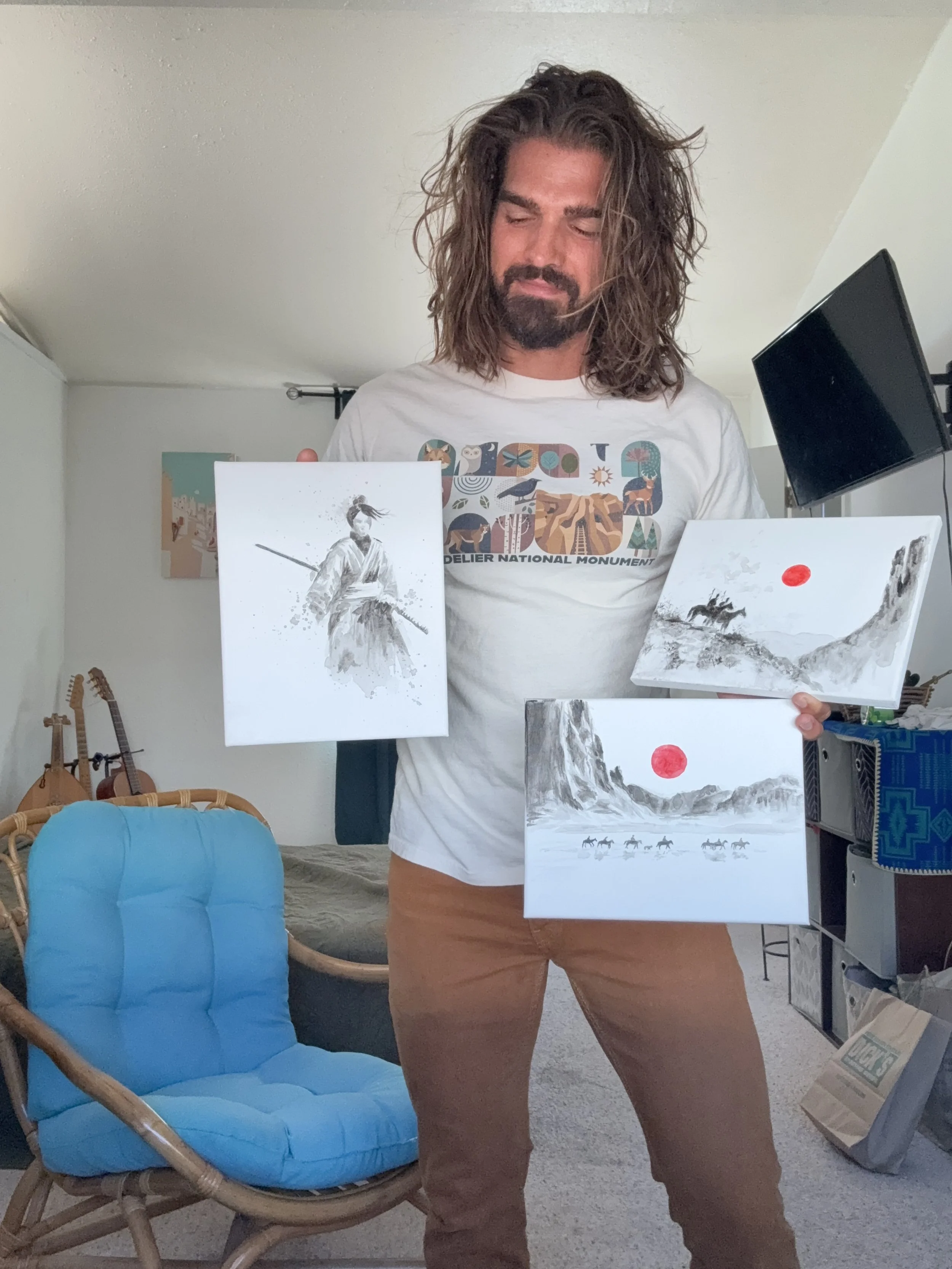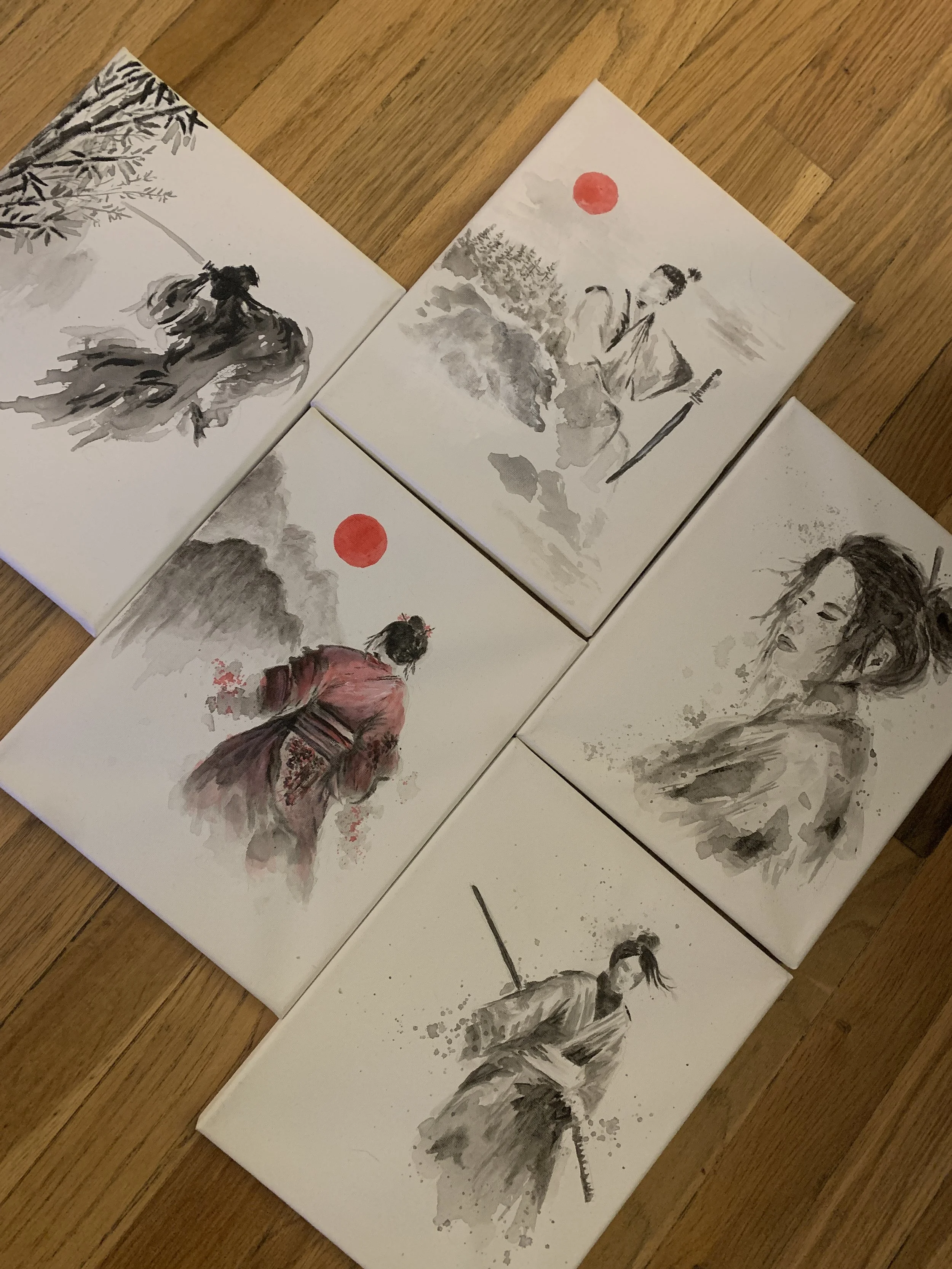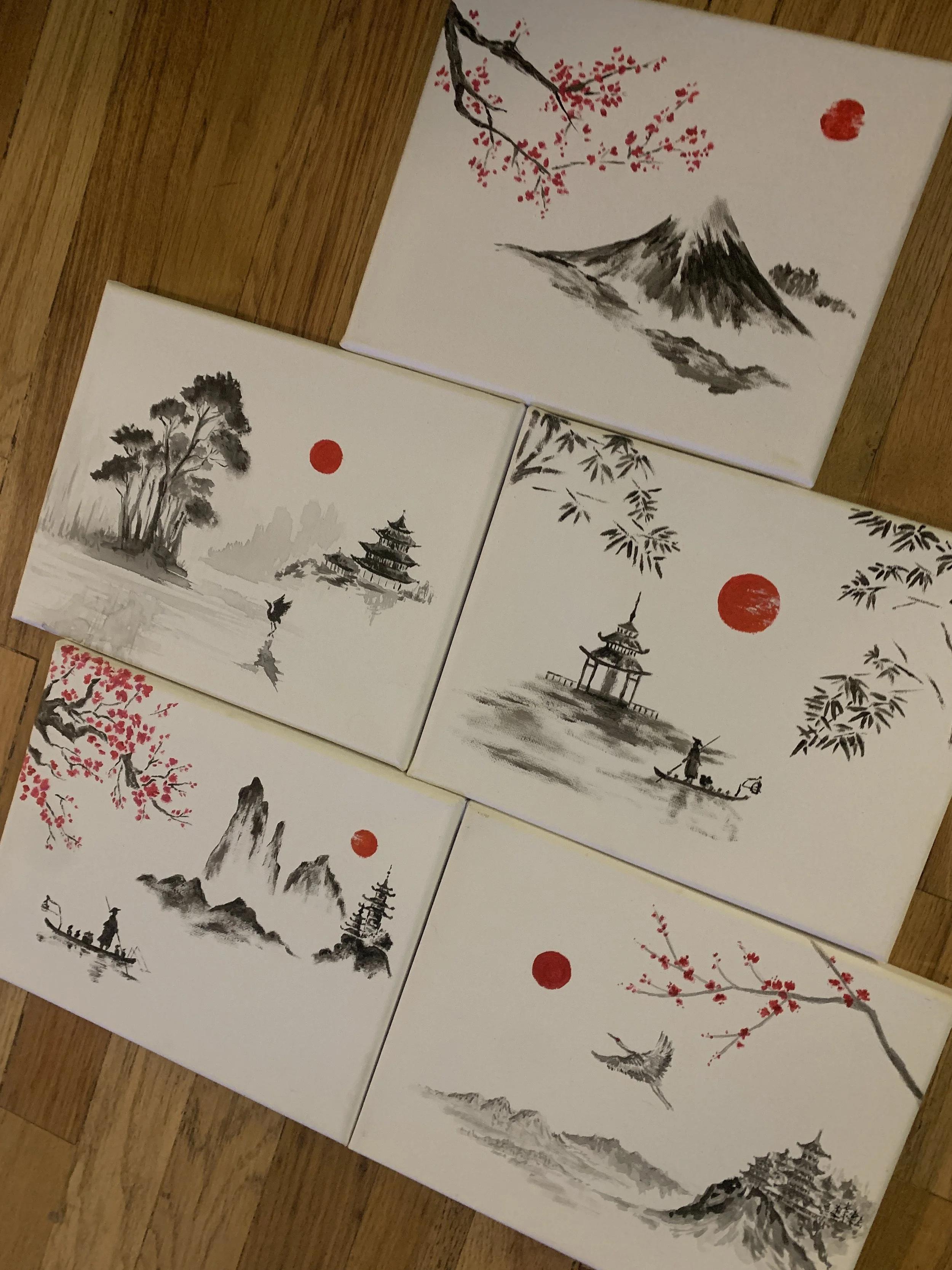Sumi-e is the Japanese painting style using only black ink. I incorporate elements of red, however, to make my pieces pop a bit more, usually with the sun, cherry blossoms, or the head of a Sandhill Crane. I began painting sumi-e in 2024. This style of art is so pleasing to me. Every stroke is minimal but purposeful.